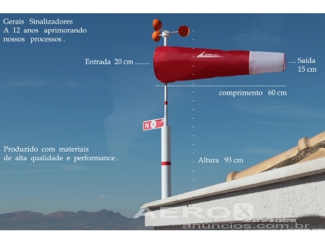 Anemômetro + leitor digital de velocidade + Biruta + mastro em alumínio marítimo