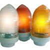 Corpo em alumínio e lente em Makrolon. Fixa-se pela base: Rosca fêmea 3/4" NPT.